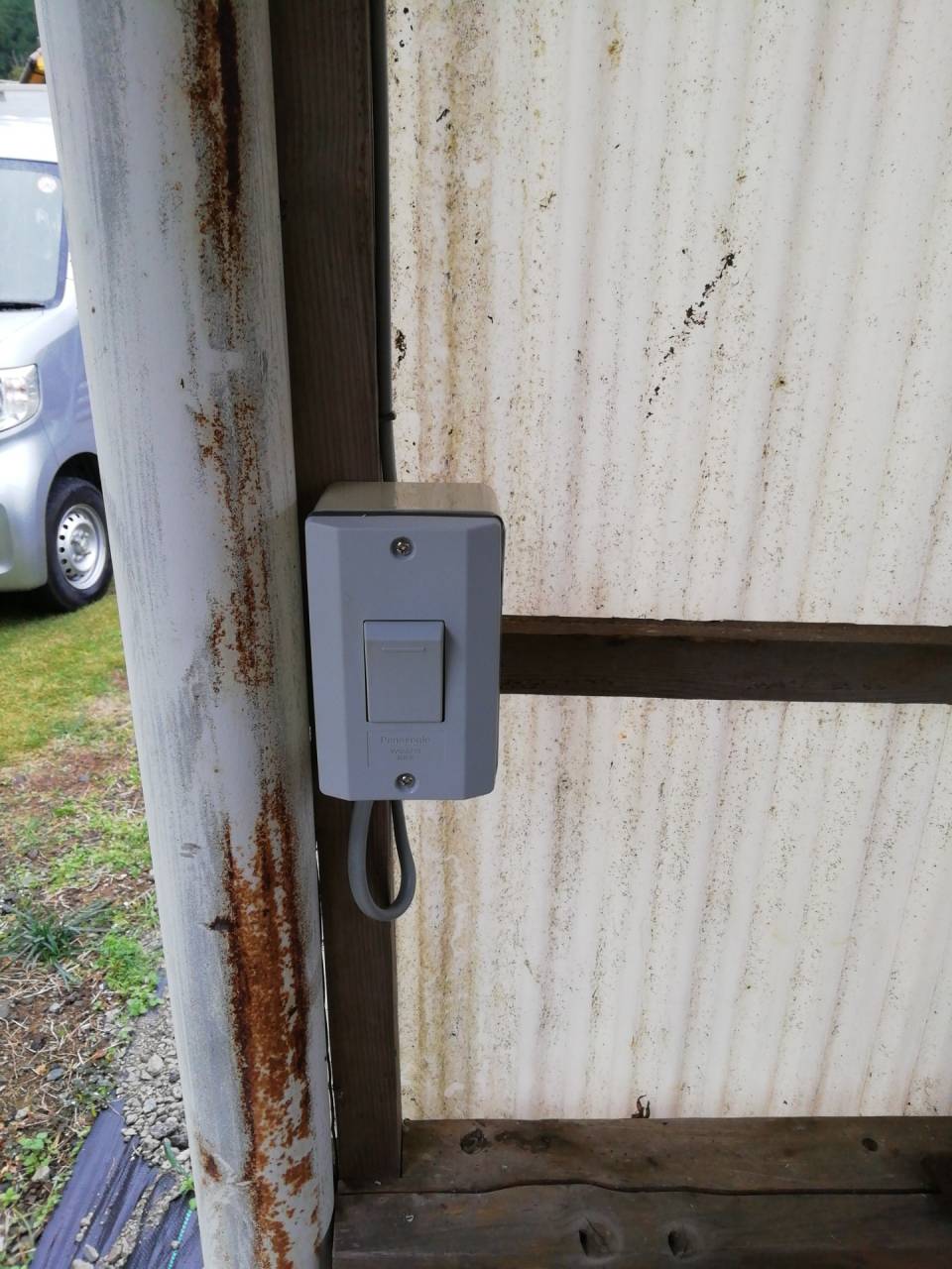 コンセント、増設、照明取り付け工事 2022/11/07 コンセントの設置状況です ビニールトタンが明るくて、ブラウンカラーの防水コンセントが暗くて写ってしまいました。 屋根と、壁が2面の倉庫なので屋外と同じ仕様で防水コンセントを選定しました。 照明の設置状況です 長期在庫品でしたので格安で、販売させていただきました。 LEDです。 スイッチの設置状況です。 コンセント同様に防水仕様です。